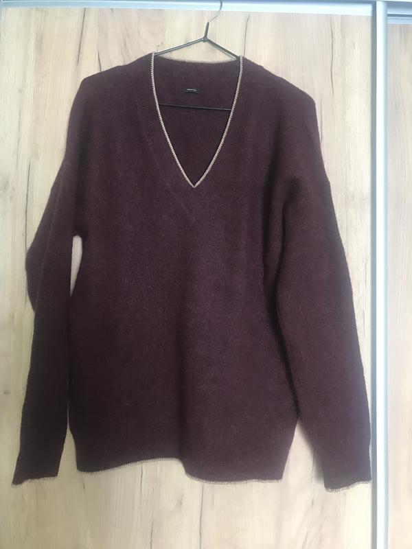 Ідеальний светр, дуже добре тягнеться. Колір - темно бордовий, у складі 33 відсотки вовни та 7 відсотків альпаки. В ідеальному стані. Підійде для розмірі : m- XL. Заміри: ОГ - 54, довжина - 65 с, довжина рукава від шиї - 75 см. Massimo dutti.