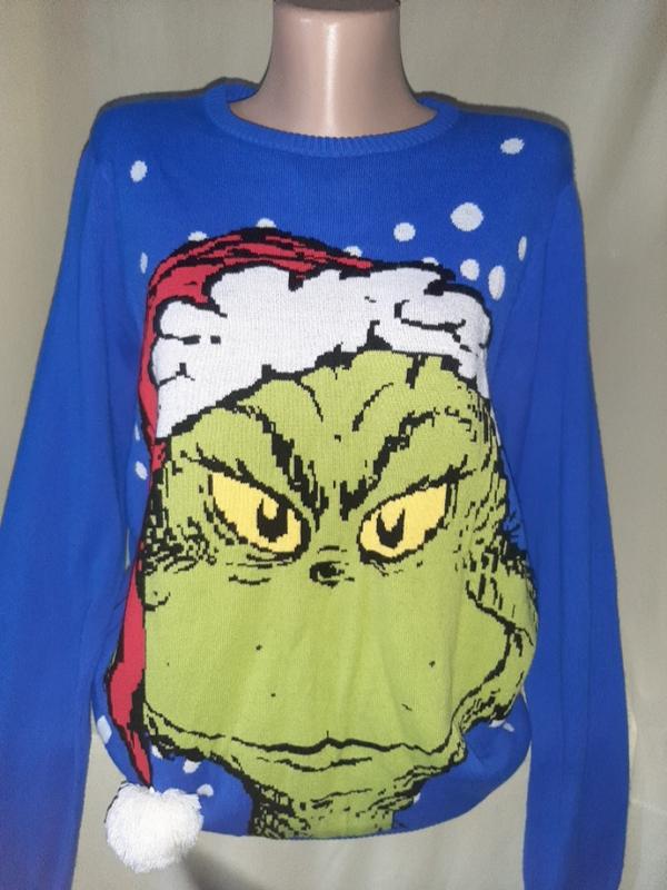 Синий свитерик Гринч, размер S : ПОГ - 55см, рукав - 68см, длина - 72см