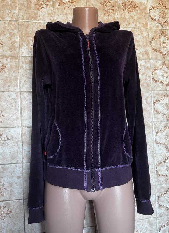 Велюрова кофта на молнії, в дуже гарному стані, без нюансів. Красивий фіолетовий колір. Мʼякенька і зручна. Довжина виробу 57см, груди 50см, стегна 48/54см. Довжина рукава з манжетом 68см, плечі 40см. Підійде на наш 44-46 розміри.