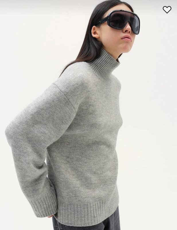 Очень стильный и теплый свитер серого цвета с высоким горлом из новой коллекции H&M Высокий ворот, связанный резинкой. Спущенное плечо. Низ рукавов и свитера - резинка, остальное - гладкое полотно Состав: полиестер (52%), акрил (39%), шерсть (6%), еластан (3%) Размеры - M Замері: ПОГ - 58 см Длина по спине - 59 см. Длина рукава от верхней отметки - 7 см. длина рукава от плеча - 54 см. Плечи - 55 см