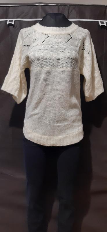 размер S молочного цвета узор косичка мягкий пог 49 см рукав 3/4(половинки,) длина 70 см ширина внизу 48 см тягнется