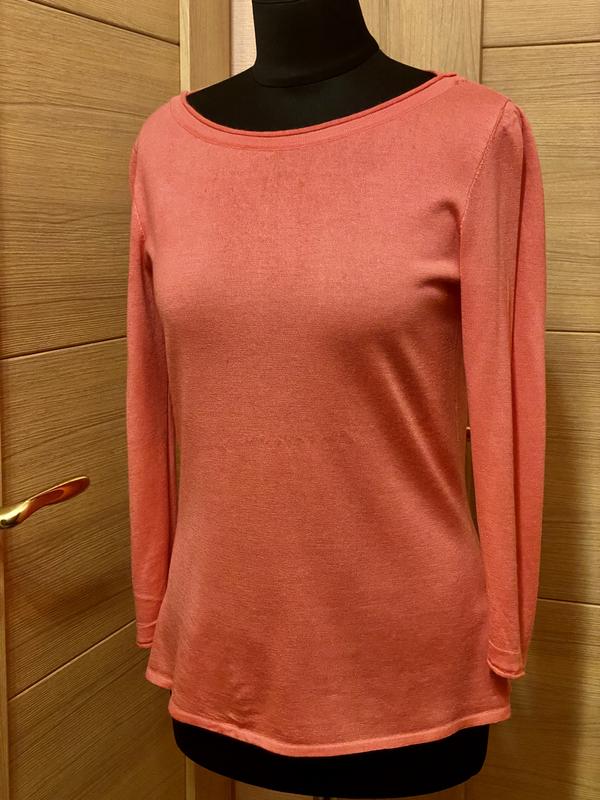 Новий нiжний светер кофта відомого Iталiйського бренду на 46, 48 розмір М або L. Брендовий жіночий одяг великого розміру. Орієнтуйтесь будь ласка на заміри: довжина 63 см, напівобхват грудей 51 см, ширина плечей 41 см, рукав 3/4, довжина рукава вiд плечового шва 54 см. Плюс тканина в міру тягнеться. Шикарний натуральний склад тканини - кашемiр та шовк. Гарний насичений лососєвий колiр, фото на жаль й колір всю красу кофти не передає. Фотографії знято на звичайний телефон, без спалаху та сторонніх програм. Всі мої речі та аксесуари якісні, покупкою залишитесь задоволені) За потреби зроблю Вам додаткові фото та з радістю відповім на всi Ваші запитання)