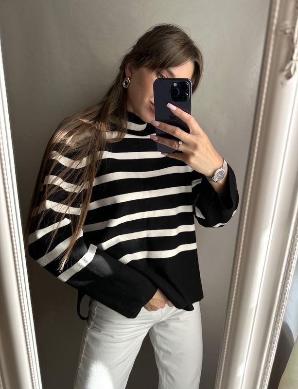 Светрик в смужку від H&M Сідає вільно Має невеликі розрізи по бокам Розмір S-можна невелику М Стан чудовий