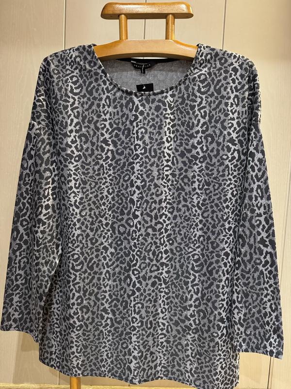 В наявності гарна кофточка фірми PEACOCKS. Розмір вказаний L, за замірами більше йде на 16/18. Склад: 98% поліестеру і 2% еластану, тканина добре тягнеться. ПОГ-60 і ще тягнеться, довжина-77, плечі приспущені...довжина рукава від коміра-73, ширина по низу-61 і ще тягнеться.