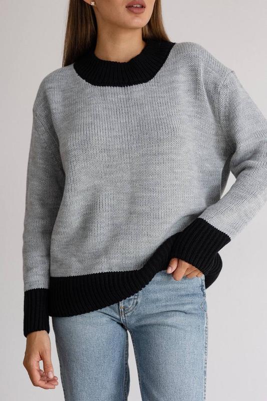 Вʼязаний жіночий светр. Сірий колір, чорні комірці. Український бренд, фото з інстаграму оскільки вони в них дуже класні та якісні :) Розмір С