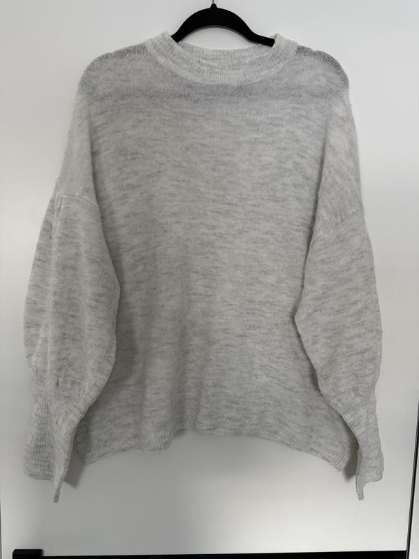 Ніжний светр вільний крой , Довжина 60, Пог 67, пот 66, пос 65 плечі спущені 70, рукав 60, По лінії плеча 77, пройма напів обхват 29, біцепс 25