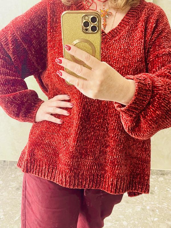 Светр жіночій F&F. Овер. Р 18-50. Але забагато більш. З V oбоазним вирезом, Яскраво бордово-помарачого кольору. Коттон- кручена нитка. Дуже мʼякий , як кролик. Стильний, актуальний, трендовий колір, для кожного дня річ. Свій( не секонд) одягений один раз. Все на фото. Заміри: ОГ-70. Довжина-69, довжина рукава від горловини -72 , ширина рукава полуобхват 21. Доп фото по запросу.