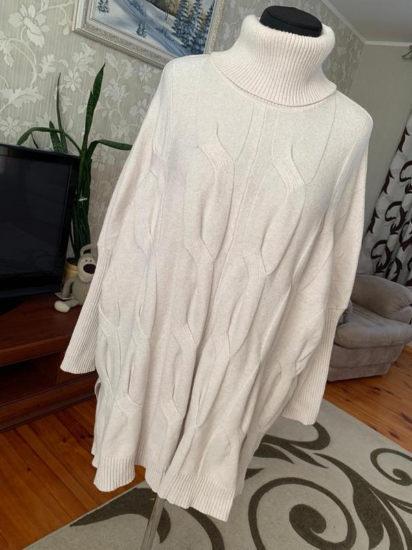 Теплий подовжений светр. Розмір не вказаний. Йде на 22/24 ПОГ 75 ПОБ 80 Рукав від горловини 75 Біцепс 20 Довжина 80 Висота розрізів 16 Стан ідеальний