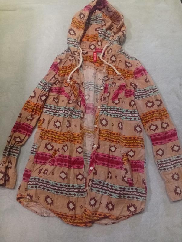Женская кофта на пуговицах, с капишоном, есть карманы в принтер