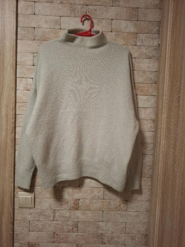 мягкий тёплый свитер, цвета шалфея, с воротом стойкой рукав от ворота 79 пог 64 длина 63