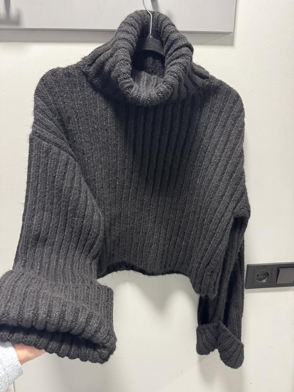 Оверсайз укорочений светр з обʼємними рукавами та горловиною, розмір S-M, новий але без бірки