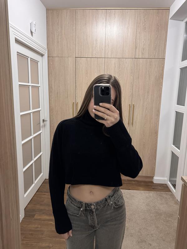 Кофта Zara, розмір S, стан хороший, має високе горло, вкорочена. Матеріал: 53% віскоза , 27% поліестр, 20% нейлон