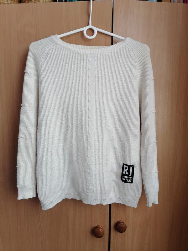 Свитер с нашивкой RI WNM. ПОП 44 см, ПОГ 50 см, ПОТ 46 см, рукав от горловины 64 см, длина 59 см. Матриал акрил.