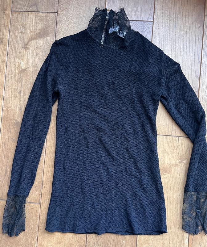 чорний джемпер Valentino з довгими рукавами та мереживними манжетами і коміром.