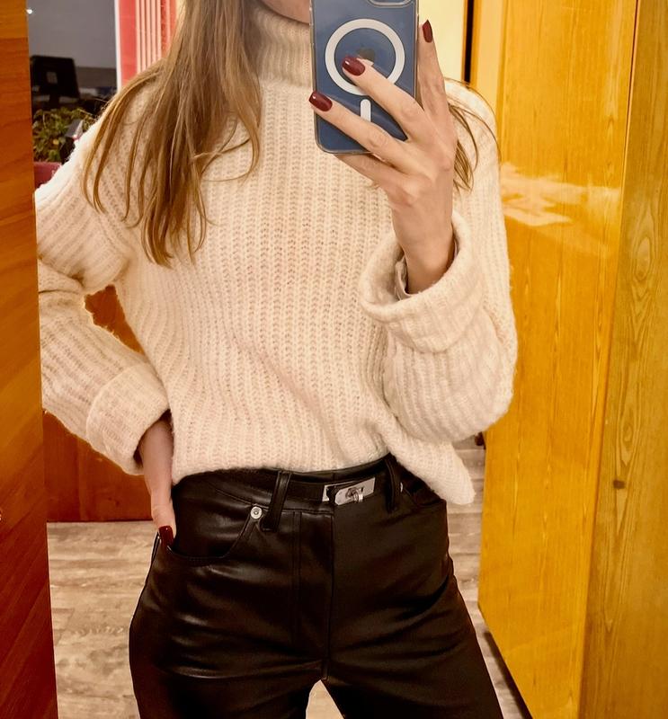 Вказано на підлітка, але великомірить Підійде на хс/м Фасон оверсайз Колір молочний Рукав повної довжини із підворотом Вʼязка мʼяка, не колеться
