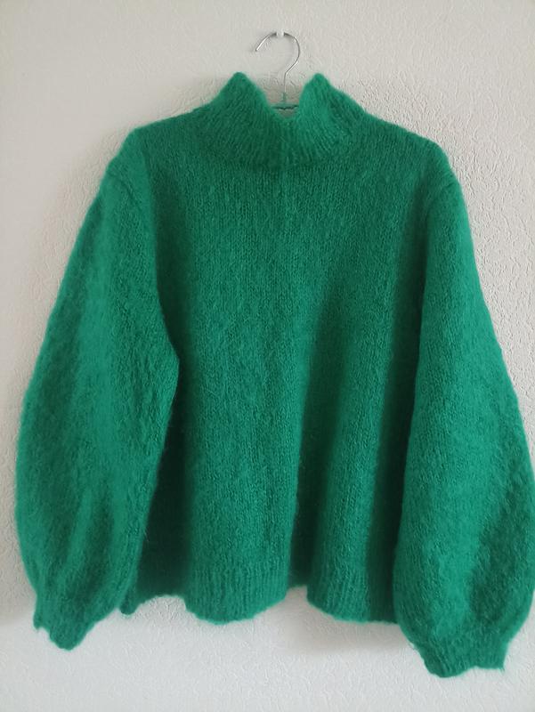 Мохер, самов'яз ,дуже яскраве, насичений глибокий зелений, довжина 58 см, рукав 55 см, ширина рукава 22 см, напівобхват грудей під пахвами 61 см, напівобхват талії 60 см, напівобхват низу 56 см.