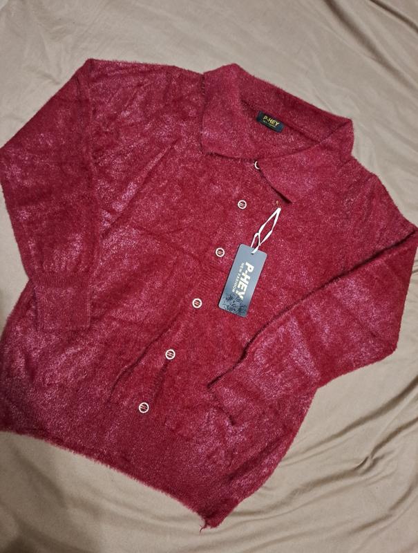 кофточка альпака бордового цвета с воротничком. Нова. Ог 100-116 ..