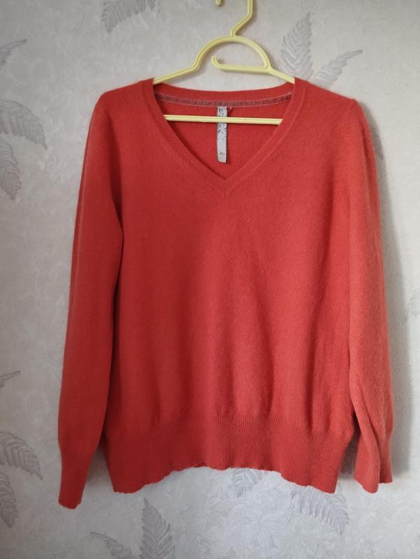 Размер 16. Замеры: плечи 40см пог 52см поб 45см длина 59см рукав 59см. 100% кашемир. Нюанс: слева штопка еле видная и резинка не ровная и на локтях истончен. В целом свитер пушистый и теплый, носибельное состояние. В цене учтены нюансы.