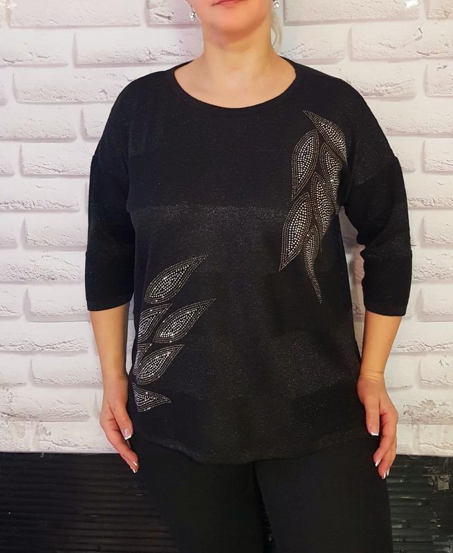 Женская кофта. Тканина люрекс. Длина 70 см. Рукав 3/4 Объем груди от 120 до 130 см. Принт-камение на клеевой основе.