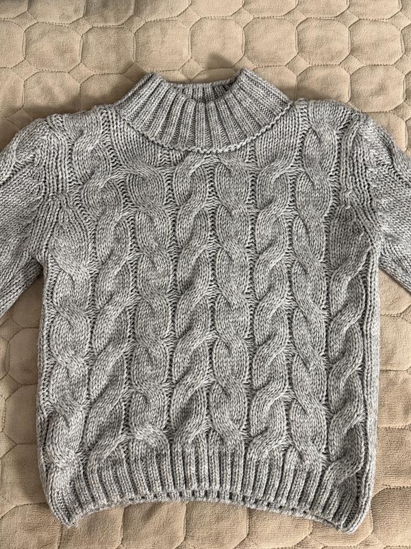 Теплий в'язаний светр сірого кольору з об'ємним візерунком "коси". Особливості: • Високий комір-стійка для додаткового тепла • Складний рельєфний візерунок по всій поверхні • Еластичні манжети та низ • М'яка фактура в'язання Ідеально підходить для прохолодної погоди. Універсальний крій дозволяє носити як самостійно, так і під верхній одяг. Стан відмінний.