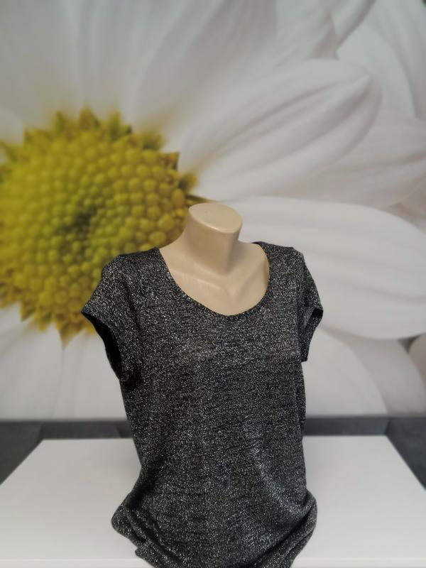 Классическая однотонная кофтонка с коротким рукавом цвета графит. Прикрашена люрексом. Легкая и удобная. Приятная на ощупь. Гладкая машинная вязка. Тонка нитка. Тянется с легкостью. Ложится свободно. Аккуратный вырез Есть размеры.