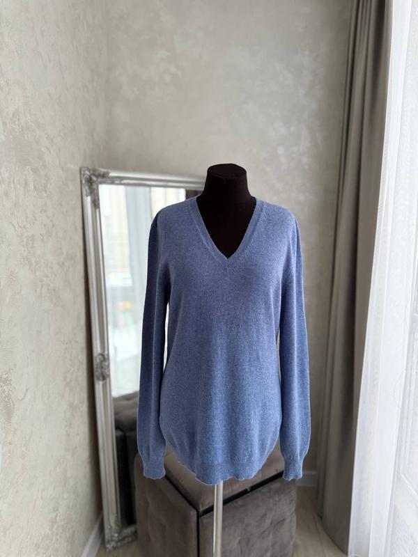 Жіночий светр 100% кашемір, блакитного кольору Стан ідеальний Заміри: Розмір Л Рукав 67 см Висота 70 см Під мишки 46 см Плечі 42 см