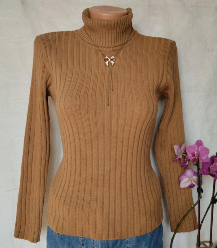 Классный свитер гольф. На наборе состав ткани и размер не видно. Выглядит на хлопок с акрилом. Замеры: длина 57 рукав 55 пог 40-50 низ 40-50