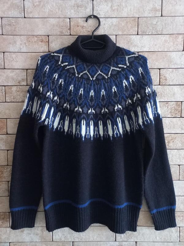 Женский теплый свитер бренда H&M. Воротник с отворотом, аккуратно прилегает к шее. Рукав реглан. Фасон полуприталений. Стан идеален, без дефектов. Подойдет размер М-L. Цвет синий.
