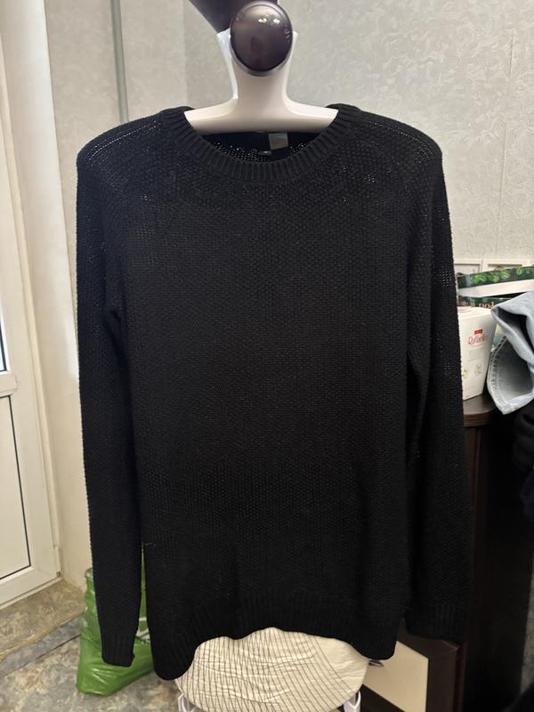 Удлиненный черный свитер длина 70, ПОГ 52, рукав от горловины 84