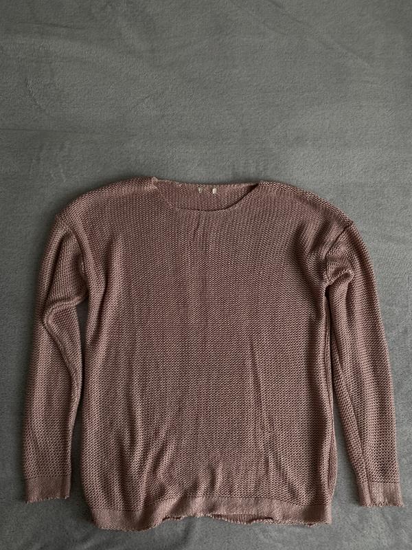Светр з відкритою спинок завдяки візерунку в ідеальному стані. На фото вдягнений на розмір XC. Хоча більше схожий на oversize. Колір брудно рожевий. Заміри: Довжина - 62см Напів обʼєм грудей - 47см Довжина рукава від пахви - 47см Довжина рукава від горла - 70см Склад тканини: 100% acrylic Якщо є запитання або потрібні додаткові фото, звертайтесь і я з радістю відповім!