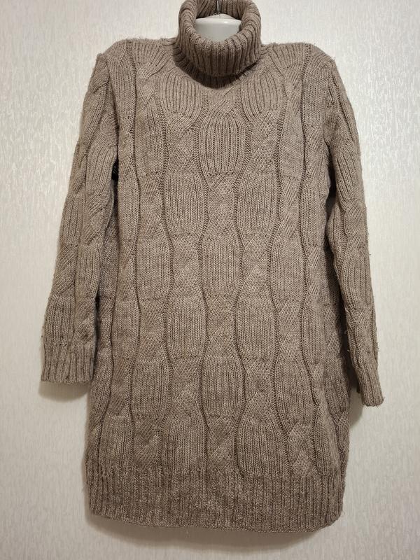 Свитер-Туника, женский удлиненный Свитер, теплый,Высокая горловина с отворотом,грубая погремушка с узором, внизу широкий манжет Размер:50/52 см.замеры Плечи-48 Пог-61 Пот-58 Поб-60 Рукав-59 Длина-79 Шерсть,полиэстер