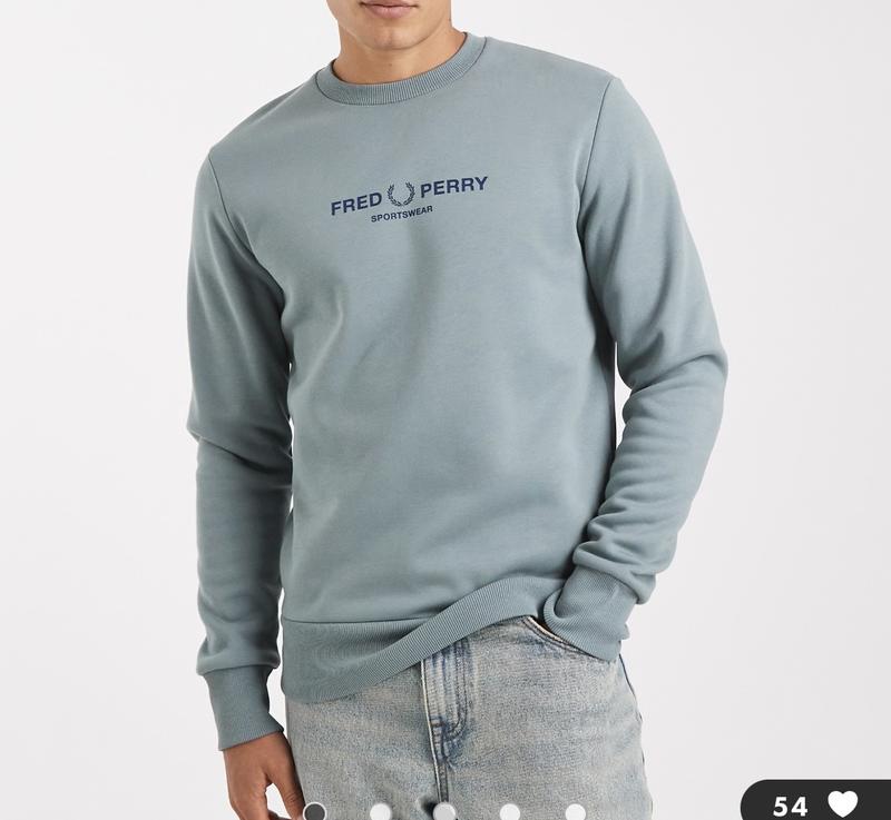 Спортивний графічний світшот Fred Perry світло-блакитного кольору, 100% cotton. Оригінал.