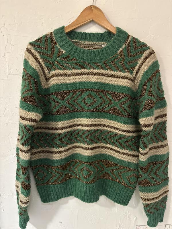 Стильний жіночий светр від відомого бренду Scotch&soda з геометричним орнаментом з золотою ниткою Довжина 57 Ширина 50 Довжина рукава 54