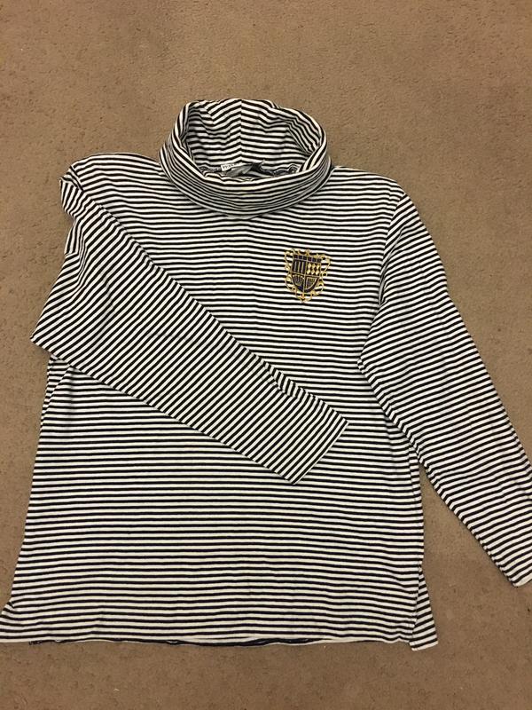 Котоновий гольфік у черно-білу смужечку. НОГ-56-60см НОС-55-60см Рукав від ворота-71см Довжина по середині спинки-65см. Заміри даю від і до комфортного носіння.