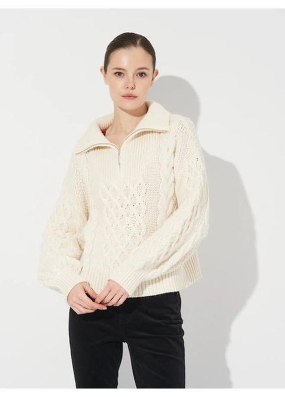 Теплый свитер с высокой горловиной на застежке зип, отвод бренда C&A.свет молочного кольра, склад:45%акрил5% шерсть50%полиэстер
