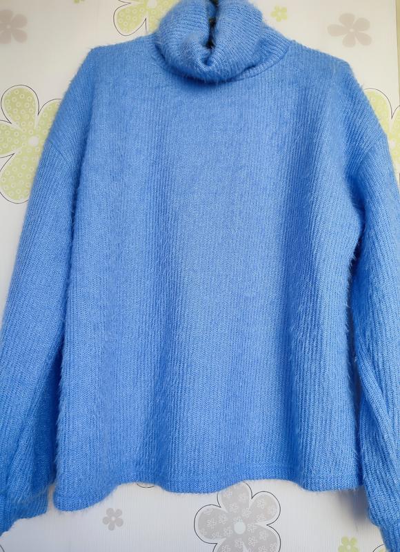 Продам женский свитер голубого цвета, длина 60см, обхват груди 56см (полуобхват), длина рукава 50см, ширина плеч 60см, ширина горловины 20см высота горловины 18.см