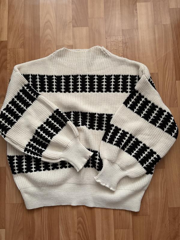 One size Довжина 60 см Горловина 20 см Рукава 42 см Від плеча 56 см Матеріал 100% акрил Теплий светр, добре тримає форму, обʼємні рукава. Стан ідеальний