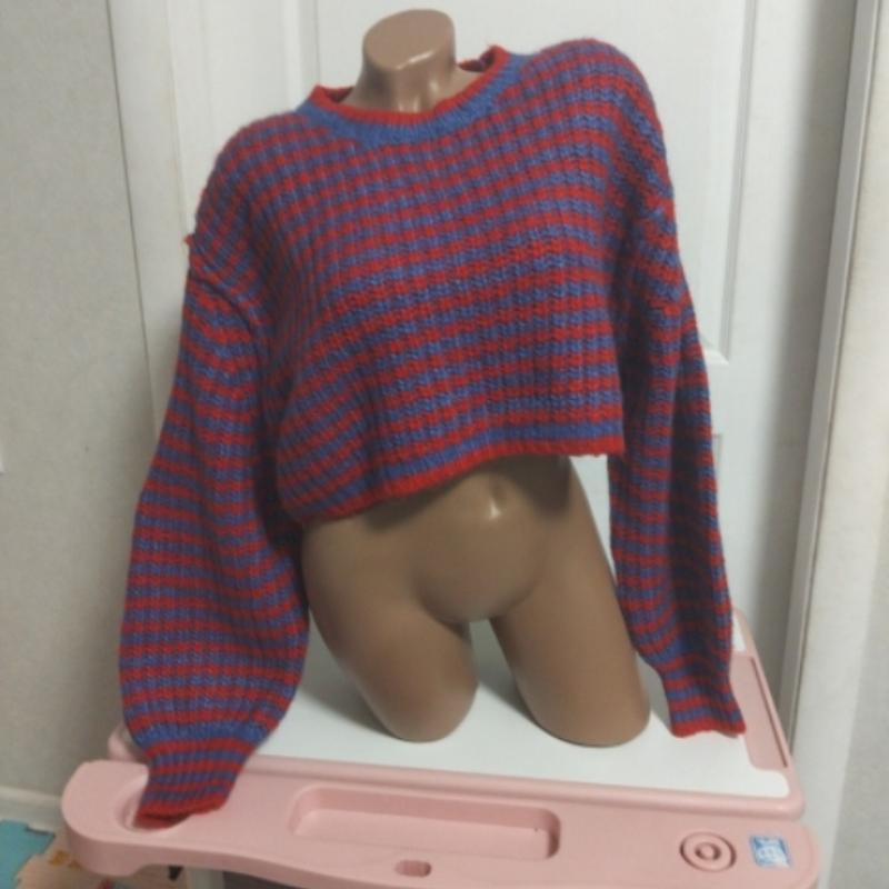 Женский свитер Zara из смеси шерсти и альпаки, укороченный, крупной вязки, в полоску, с рукавами-баллонами, размер M. Длина 39 см, плечи 54, грудь 124, рукава 56/42. Оверсайз.