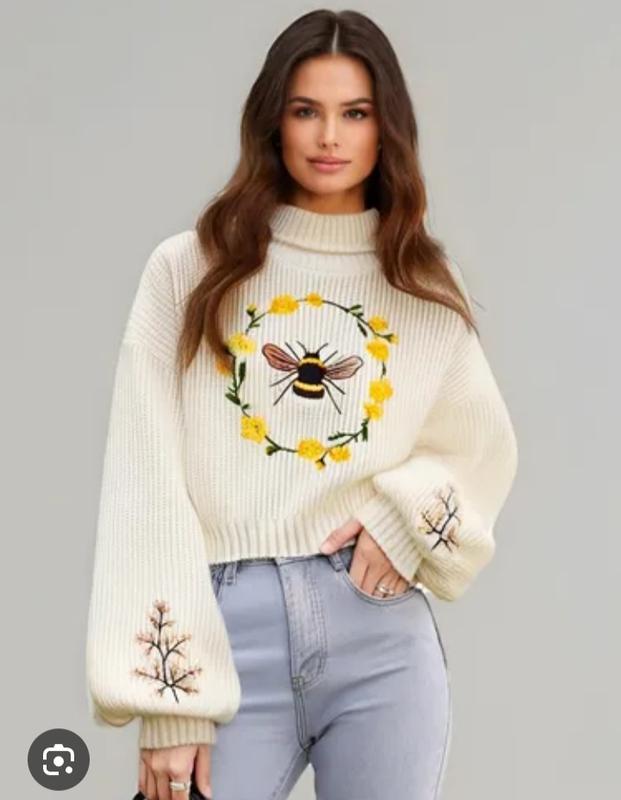 Новый, с великолепной вышивкой свитер молочного цвета. Длина 40 см, пог 55 см, свободного кроя, крой рукава приспущен. Трикотаж очень нежный и мягкий.