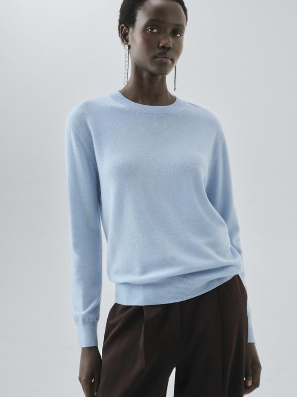 🌿100% шерсти в голубом свитере Mango с манжетами Размер:М Замеры:ПОГ 48 см, длина 57 см, рукав 70 см