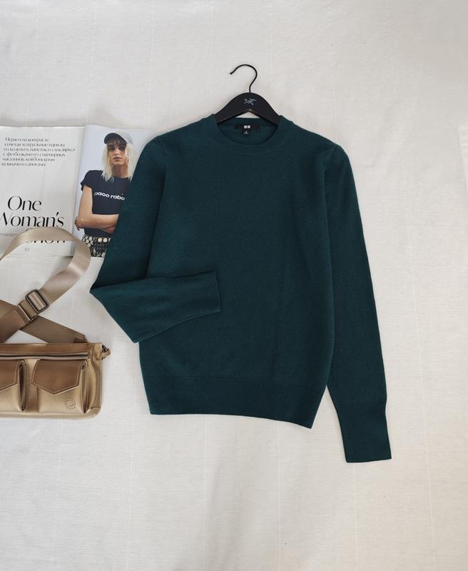 🌿100% кашемира в изумрудном свитере Uniqlo с манжетами Размер:М Замеры:ПОГ 48 см, длина 61 см, рукав 62 см