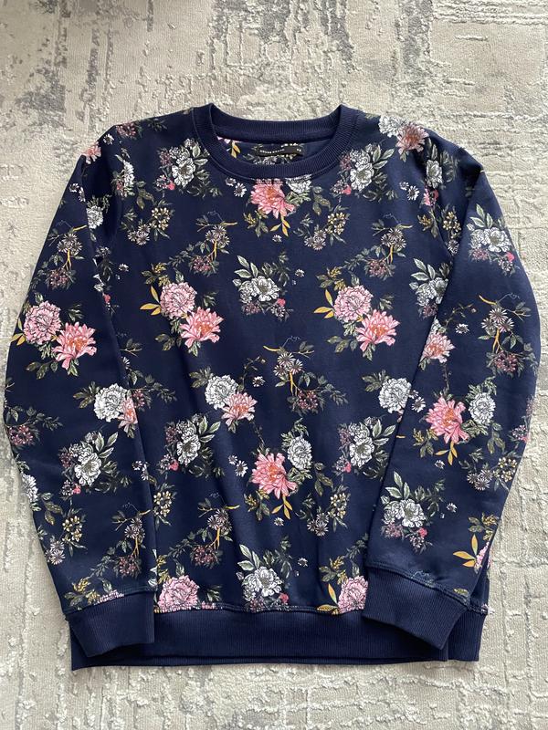 Зручна, утеплена кофточка, насиченого синього кольору з різноманітними квітами 🌺 Розмір пише xs, але, як на мене, краще сяде на s-m🤗