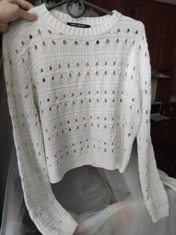 Красивый белый свитер, размер хс-м, грудь свободно 106, длина 49, тянется. пишите подписи много вещей ✨