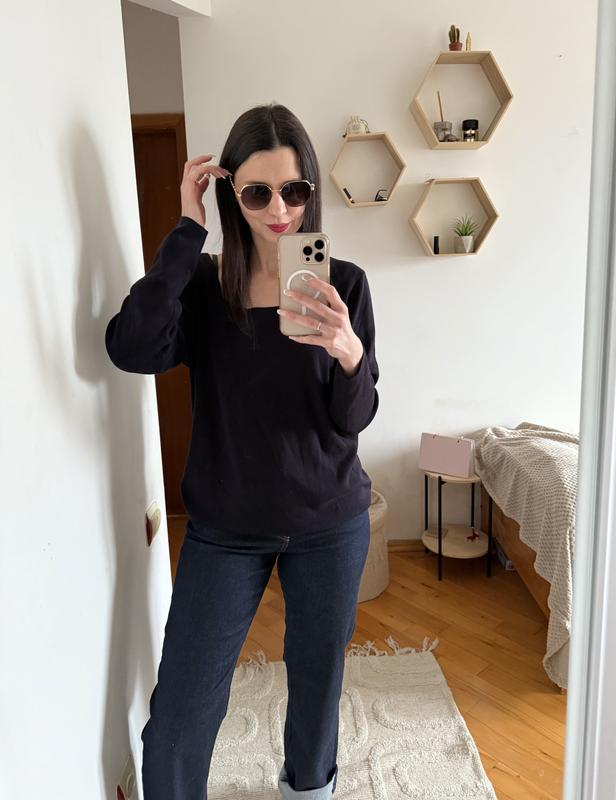 Дуже гарний светрик від Comma. На бірці ціна 70€. Колір темно синій Склад 81% віскоза,19% поліамід. Розмір 44. Заміри : довжина 70см,пог 55см