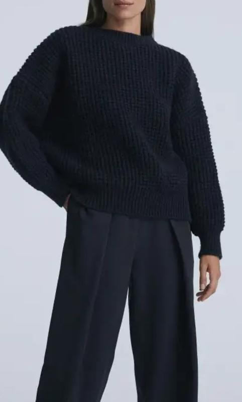 Очень теплый толстый свитер от испанского бренда OYSHO. Красивый темно-синий цвет. Купила по сниженке при 599 грн.(есть фото), продаю дешевле. Объемная вафельная вязка, низ и манжеты связаны резинкой. Модель оверсайз, спущенное плечо. 45% акрил, 30% полиэстер, 25% полиамид. Замеры: длина 56 см, ширина под проймой 60 см, ширина над нижней резинкой 50 см, длина рукава от середины горла 77 см.
