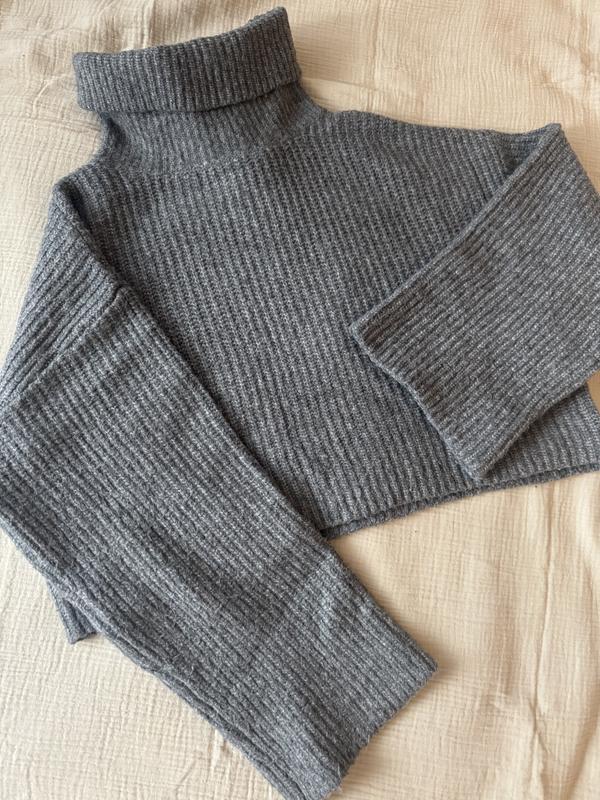 Теплий вкорочений гольф сірого кольору в ідеальному стані, розмір S Довжина 42 см Довжина рукава 43 см Пів обхват грудей 55 Плечі 58 см ( опущені) Ширина рукава 18,5 см Заміри та додаткові фото скину при потребі Перед покупкою, будь ласка уточнюйте наявність товару❗️❗️❗️