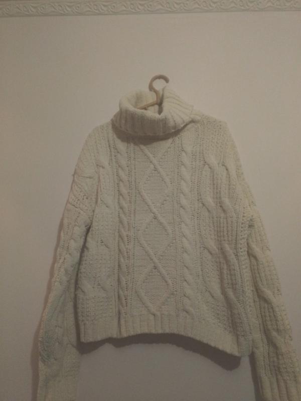 Теплый и мягкого свитер молочного цвета с опущенными рукавами Ног-53 длина рукава -58 длина свитера-58 см