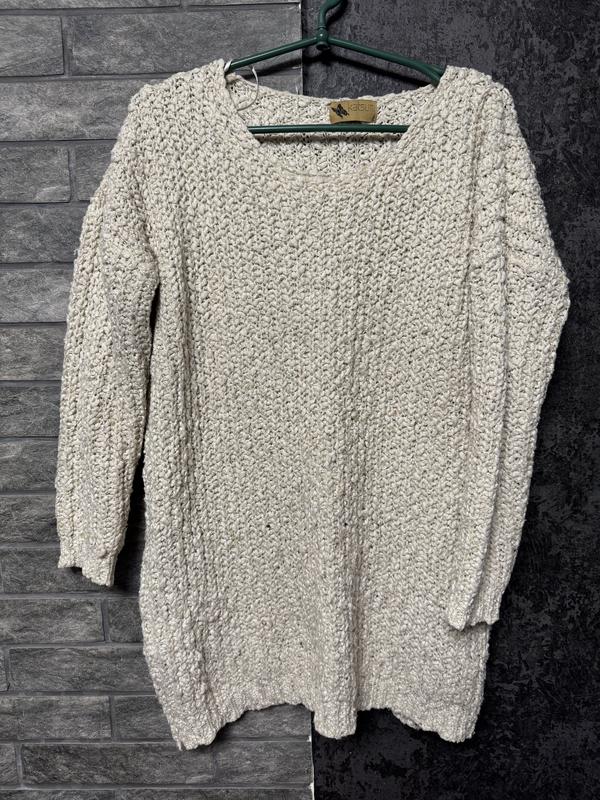 🧵Плечі 60, вони повинні звисати Напівобєм грудей 55 Таліі 54 Бедр 56 Довжина 69 Довжина рукава 44 від шва, та так як плечі звисають, то рукав значно довший Колір кремовий