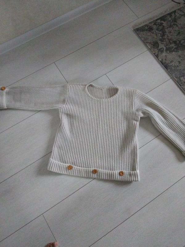 Это мой любимый свитер, но уже тесный на меня. Средней плотности. Он не смотрится объемным слишком, это уже не в тренде этого года, и при этом очень теплый за счет реально греющего состава- акрил. Рукава 7/8, пуговицы под дерево. Замеры: грудь 49, длина 54, рукав 48