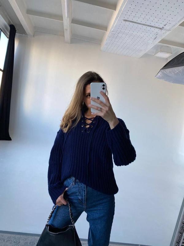 Код 2068 Светрик зі шнурівкою Приємний на дотик Вʼязка рубрик , виглядає дуже стильно Розмір єдиний 42-48 Виробництво Туреччини Кольори : синій ,чорний Ціна 900 грн